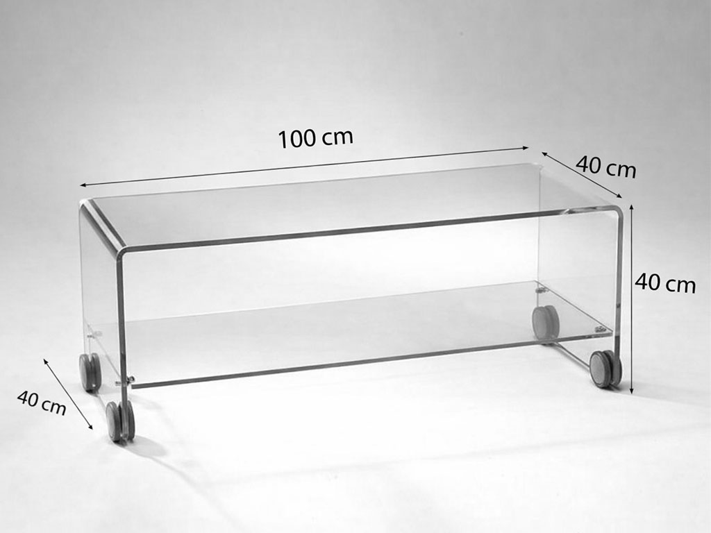 Foxtrot: meuble tv en verre courbé avec roues et étagère