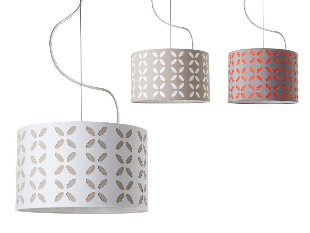 Lampe à suspension, abat-jour en tissu, lampe avec chapeau tissu, idéal comme lustre coloré, lustre moderne ou lampe en tissue. Lampe à suspension avec 2 abat-jour caractérisée par gravures ovales dans l’abat-jour extérieur, abat-jour interne en lacque et extérieur en coton perforé. C’est idéale pour le salon pour créer une atmosphère chaleureuse et raffinée.