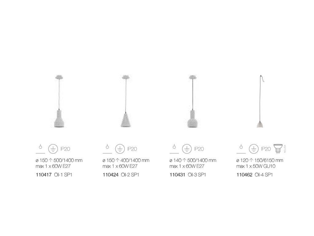 Oil-4 SP1 Diffuseur Ø 120 x H min 150 / max 12120 mm max 1 x 15W GU10Seulement le modèle Oil-4 SP1 est muni de trois crochets de fixationet 6 mètres de câble en tissu noir.
