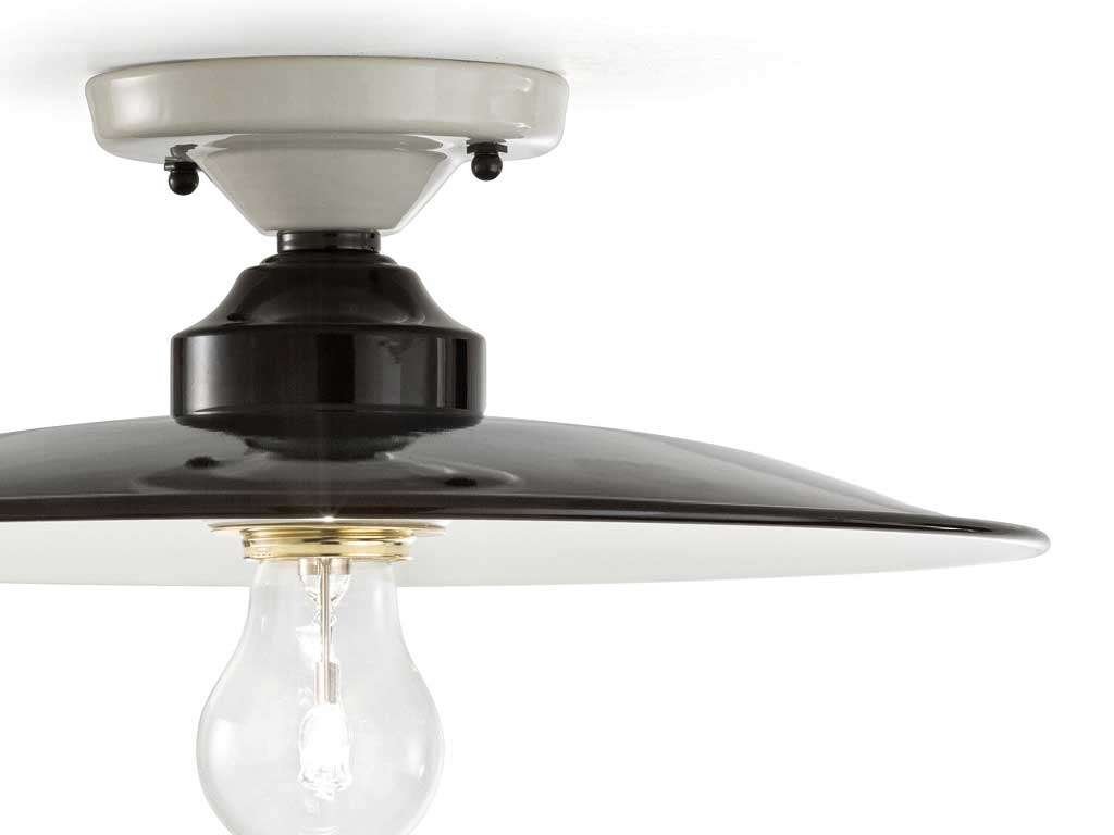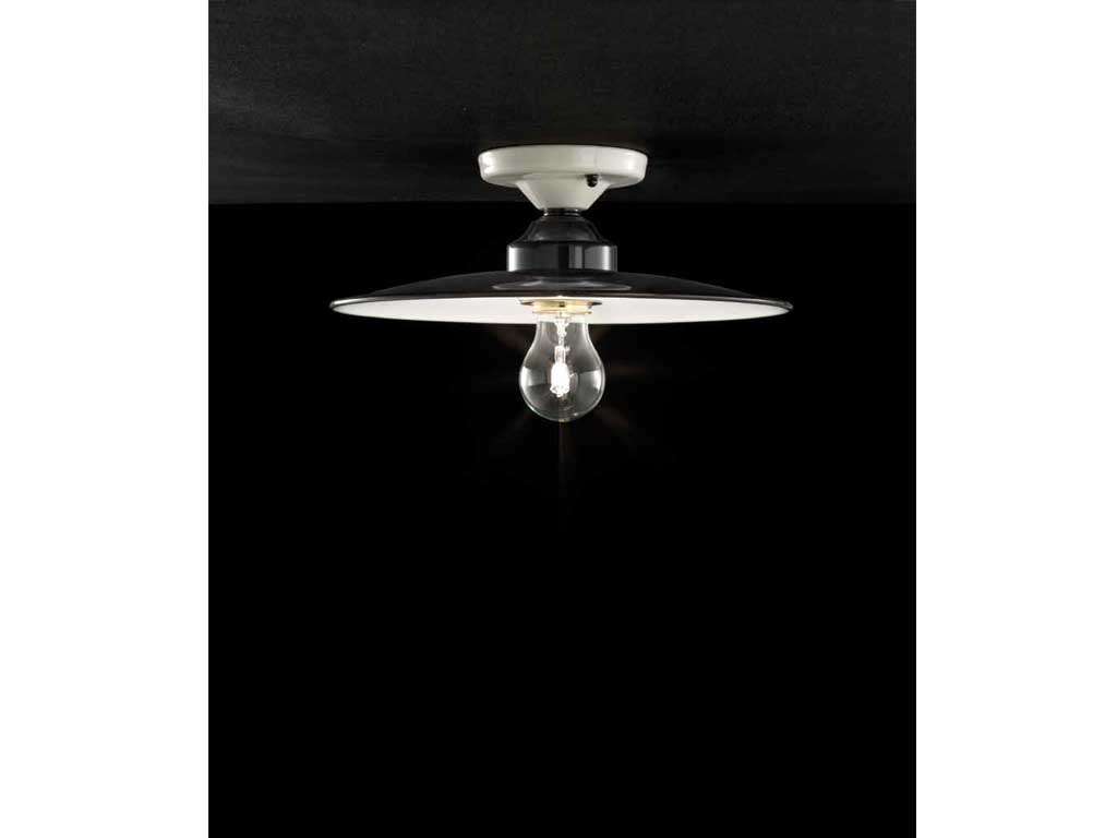 Lampe de plafond design, lampe vintage, lampe design, plafonnier industriel, plafonnier vintage idéal comme plafonnier pour la cuisine. Lampe de plafond au design minimaliste en métal et céramique disponible en 3 mesures, avec le diamètre de l’abat-jour de 25, 30 et 35 cm. Monture et détails de support en laiton. Couleurs nets et surfaces brillantes que créent un design contemporain, avec un style qui rappelle le passé. Les vis de support sont en métal doré et deviennent un détail précieux de qualité. DIMENSIONS: C1613 - Ø 25, H 10 cm - Kg 0,64 C1614 - Ø 30, H 10 cm - Kg 0,80 C1615 - Ø 35, H 10 cm - Kg 0,97 Ampoule exclue Idéal pour les maisons de caractère et de style ou pour les bars, restaurants et hôtels qui veulent créer une atmosphère unique. Produit artisanal réalisé en Italie