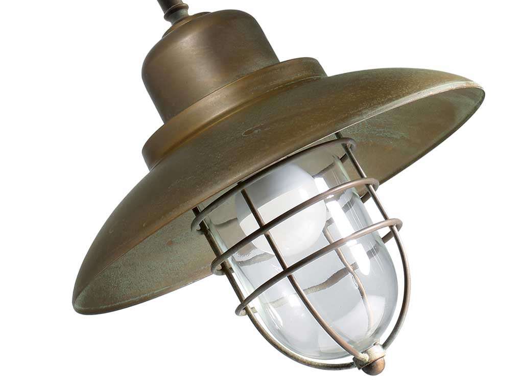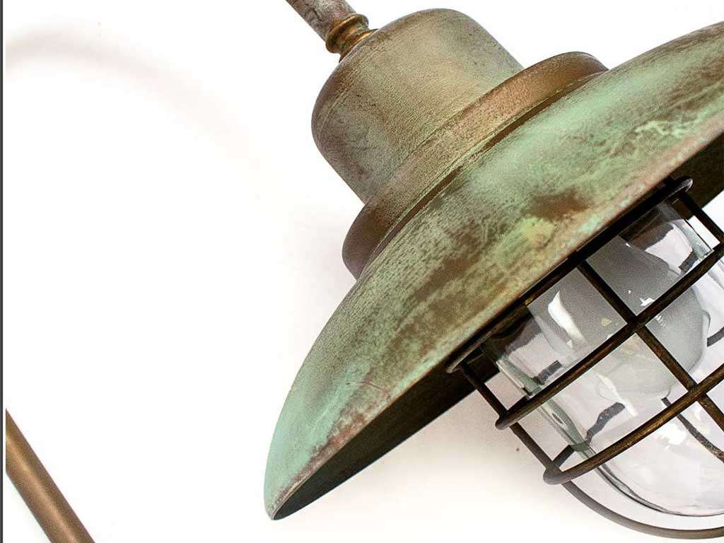 Applique pour extérieur en laiton, adaptée comme éclairage extérieur de la maison, grâce à la grille de protection du verre, qui protége l'ampoule, lampe murale d'extérieur idéale pour éclairer la maison à la plage ou la maison à la campagne.