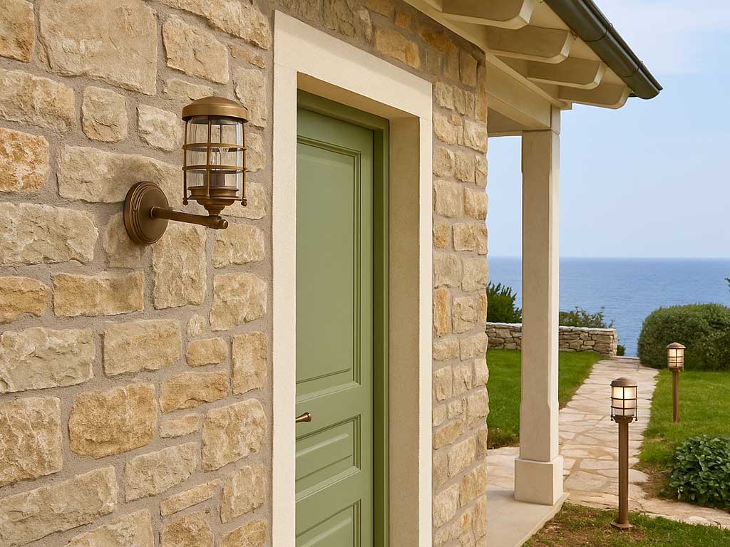 Lampe extérieur murale, lampe laiton et verre, applique nautique, idéale comme applique extérieur vintage. Ligne de lampes pour extérieur avec structure en laiton bruni et verre transparent, blanc satiné ou blanc brillant. Lampes de haute qualité avec des finitions qui durent dans le temps, particulièrement indiquées pour les villas, les maisons en bord de mer ou les élégantes demeures historiques. Chaque article est réalisé avec soin et passion, il est mis en valeur par de petits traits distinctifs, caractéristiques typiques désormais exclusives du savoir-faire artisanal. Dimensions: L 13 x P 22 x H 30 cm max 70W E27 - IP44 - 220-240V (ampoule non inclue) Couleurs et finitions: BR - Bruni Verre: Verre Transparent Verre blanc satiné Verre blanc brillant Le vieillissement de ces produits est faite à la main donc la tonalité du laiton pourrait avoir des nuances différentes de celles représentées en photographie. Ces produits sont fabriqués à la main avec des matériaux traditionnels et de qualité comme le laiton, savamment créés à la main pour obtenir de petits et grands jeux de lumière au design unique et de haute qualité avec des finitions qui durent dans le temps. Verres, soufflés par des maîtres artisans selon des techniques de travail antiques. D'éventuelles imperfections mineures doivent être considérées comme des qualités et des traits distinctifs de l'ouvraison recherchée et non comme des défauts de fabrication. Produits pour l'extérieur, ils sont traités pour vivre même près de la mer. Produit fabriqué en italie
