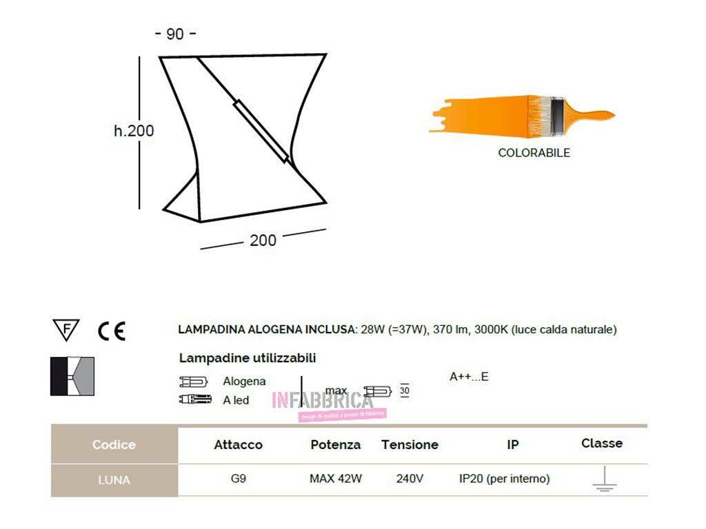 LUNA, lampe murale caractérisée par des lignes minimales et originales et une surface brûte, blanche naturelle, un peu poreuse. La lampe présente une ouverture supérieure et inférieure et une coupe décorative dans la partie frontale qui crée un effet de lumière frontal.