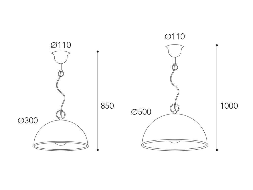 Lampe suspendue de grande dimension, lampe à hémisphère d’un diamètre de 30 ou 50cm, parfaite comme lampe pour la cuisine ou pour le salon.