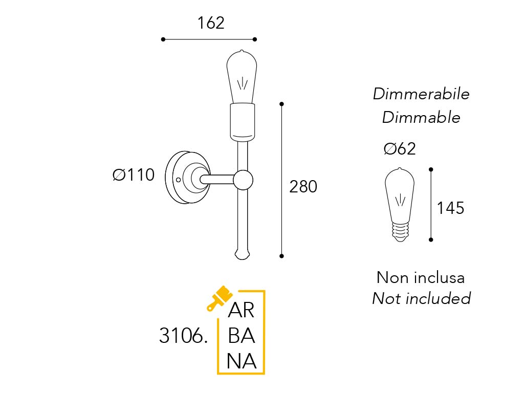 Lampes murales, appliques murales, torches d'intérieur, idéales comme lampes vintage ou lampes industrielles. Lampes en laiton moulé sous pression et en tôle. Idéales pour éclairer les environnements vintage tels que les fermes et les villas ou pour l'ameublement de style industriel. Dimensions : Lumen 3105 - P 18,5 H 29 cm - Fixation murale 11 cm Lumen 3106 - P 16,2 H 28 cm - Fixation murale 11 cm Finitions : Laiton vieilli cuivré (.AR) Laiton bruni (.BA) Degré de protection IP20. Les ampoules LED peuvent être installées dans la douille E27, ce qui permet de réaliser des économies d'énergie considérables. Max Watt 28 : sur des surfaces combustibles (ex. bois) : seulement ampoule avec Ø 126mm. Classe d'efficacité énergétique A+÷E AMPOULE NON INCLUSE Produit fabriqué en Italie L'antiquisation de nos produits est effectuée manuellement, par conséquent la teinte du laiton peut être différente de celle représentée sur la photographie. L'antiquisation manuelle n'empêche pas l'oxydation naturelle de ce métal qui, exposé à l'extérieur, est soumis à l'action des phénomènes naturels. Nos produits ne sont pas autonettoyants, donc s'ils sont couverts de sel, ils doivent être nettoyés avec des produits normaux de nettoyage des métaux. Après la procédure de nettoyage, ils reproduiront avec le temps la patine typique du vieillissement du laiton. Ce produit est fabriqué avec la plus grande attention aux détails, à la résistance des matériaux et à la qualité des finitions, afin de créer une pièce unique à chaque fois. Le travail est effectué par des artisans experts, dont le professionnalisme est à la base des produits de qualité fabriqués en Italie.