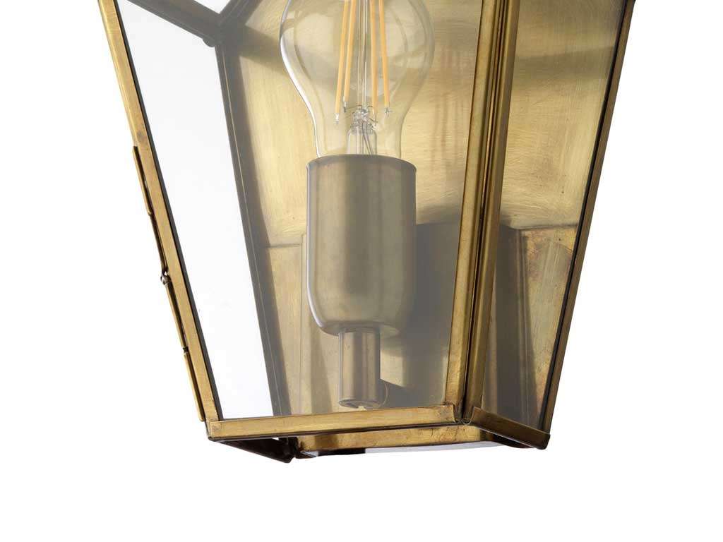 Lanterne murale d’extérieur, idéale comme lanterne murale pour l’extérieur, avec verre transparent et cadre en bronze ou laiton. Convient aussi bien comme lampe d’intérieur que comme lampe d’extérieur couverte. Les lampes s’accrochent au mur par une fente spéciale située à l’arrière de la lampe. Idéal pour les maisons historiques, les anciennes maisons de campagne et des lieux riches de charme et de design recherché. DIMENSIONS: Lampe H 27 L 19 x P 10 cm Lampe H 40 L 27 x P 15,5 cm Lampe H 47 L 29 x P 17,5 cm