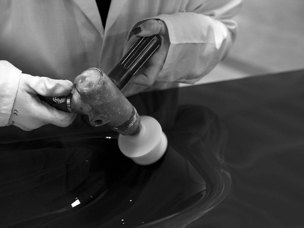 Production: chaque lavabo est réalisé artisanalement avec technique de thermoformage sur moules en ciment réfractaire.