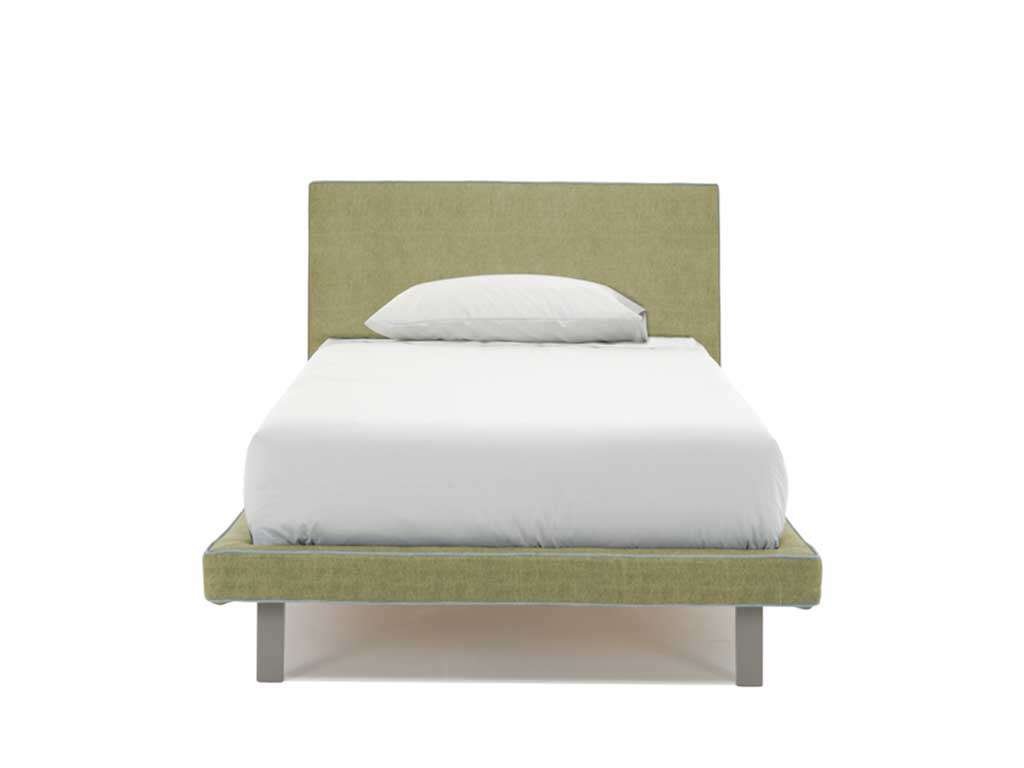 Lit simple design, lit design moderne avec un style minimaliste japonais. Lit recouvert de tissu effet jean, avec pied en bois couleur aluminium et cadre de lit avec bordure de couleur bleu clair. Disponible uniquement dans la version sans conteneur. Dimensions: Lit Simple cm L 240 P 111 tête de lit H 89 cm - Sommier cm 90 X P 200 cm Cadre de lit H 9 cm Hauteur du pied 21 cm Cadre de lit déhoussable - Tête Déhoussable - Sommier inclus Disponible aussi en version 120 cm ou double.