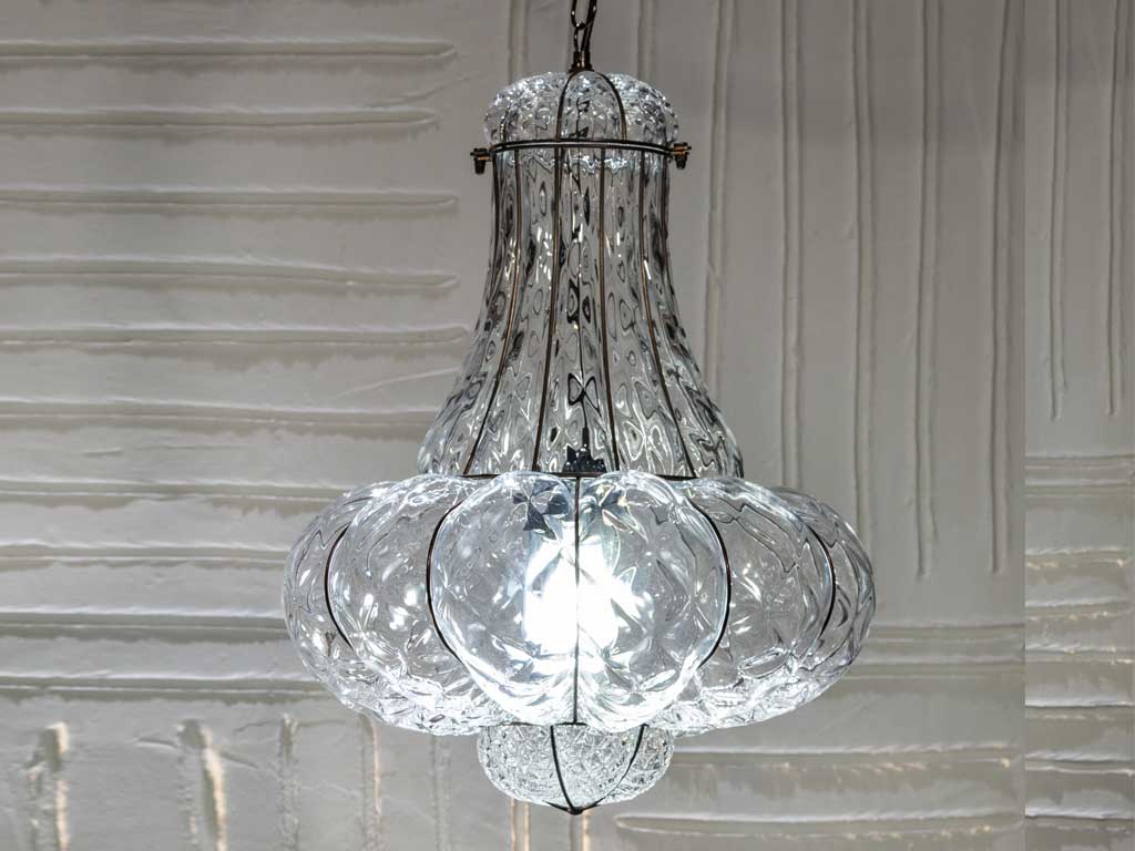 Luminaire suspendu verre , lustre en verre soufflé, lustre en style vénitien, idéal comme lustre classique de salon.