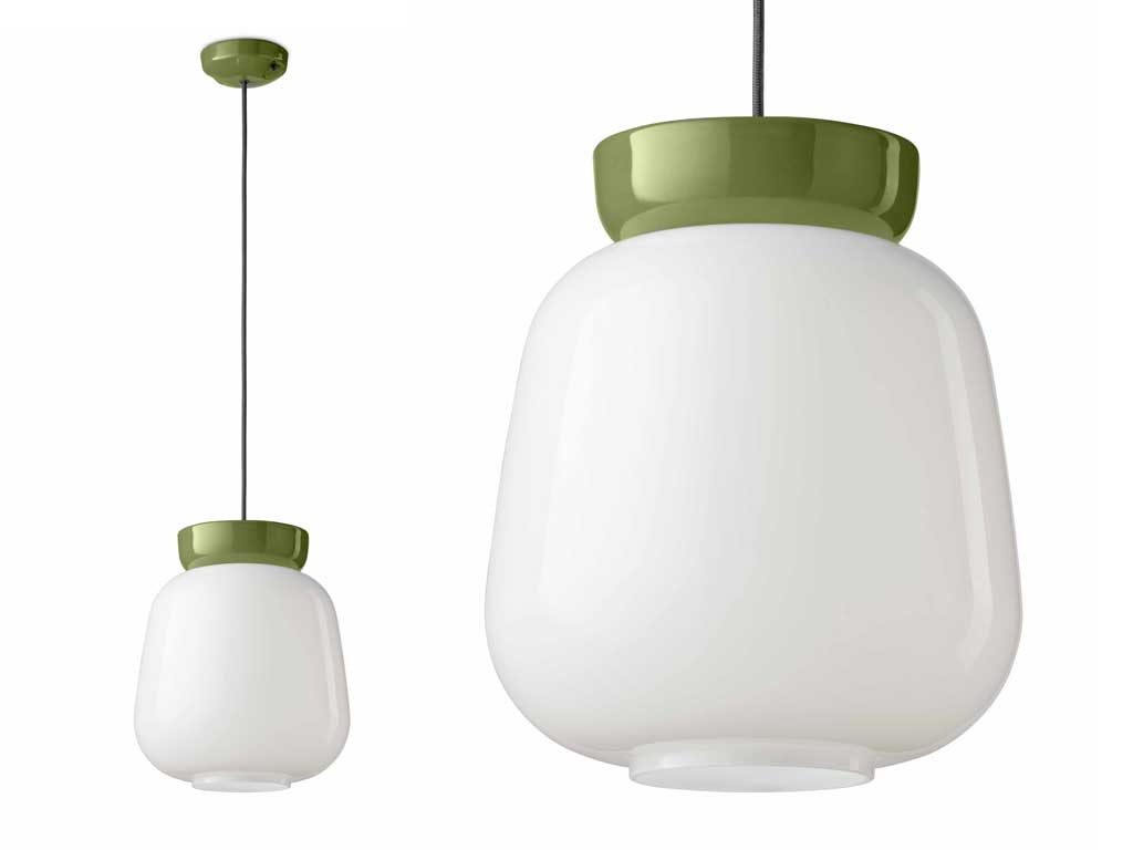 DIMENSIONS: Ø 29 cm H 34 cm - fixation au plafond Ø 12 cm Longueur de câble max 120 cm (câble de coton enduit). 1 x MAX 53W E27 - IP 20 - 220-240 V Classe énergétique A++ > D poids net Kg 2.70 Ampoule non incluse COULEURS: GLT = Blanc Laiteux et Jaune VLT = Blanc Laiteux et Vert