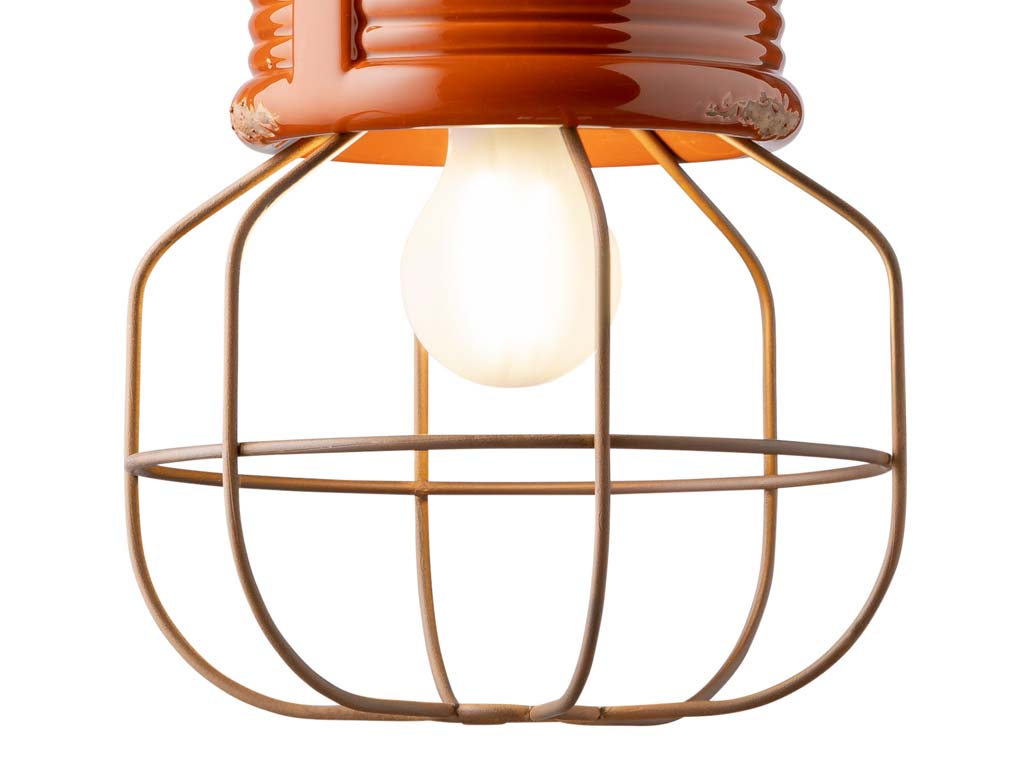 Lustre vintage, lustre de style industriel, en céramique colorée, idéal comme lustre de cuisine ou comme lampe au-dessus de la table. Lampe de style rétro en céramique aux couleurs vintage et en fer corten vieilli, dont la ligne s'inspire des anciennes lampes industrielles du XXe siècle. Le style usé et vieilli est obtenu par des effets d'usure délibérément réalisés avec des techniques artisanales et une attention particulière aux détails. DIMENSIONS : Ø 21 H 28 raccord au plafond Ø 12,5 cm - poids net Kg 2,20 1 x max 53W E27 - Alimentation 220-240 V Classe énergétique A++ > D - IP 20 Ampoule exclue Idéale dans les maisons de caractère et de style ou pour les lieux publics, les restaurants et les hôtels qui veulent créer une atmosphère unique. Produit artisanal fabriqué en Italie