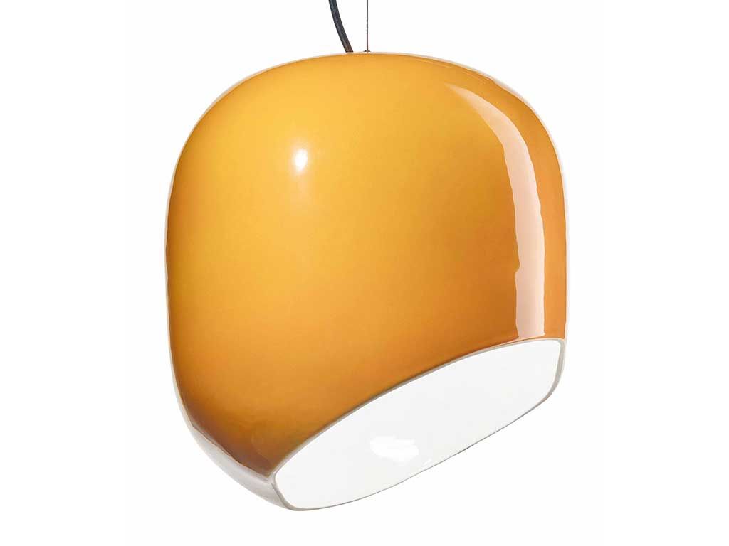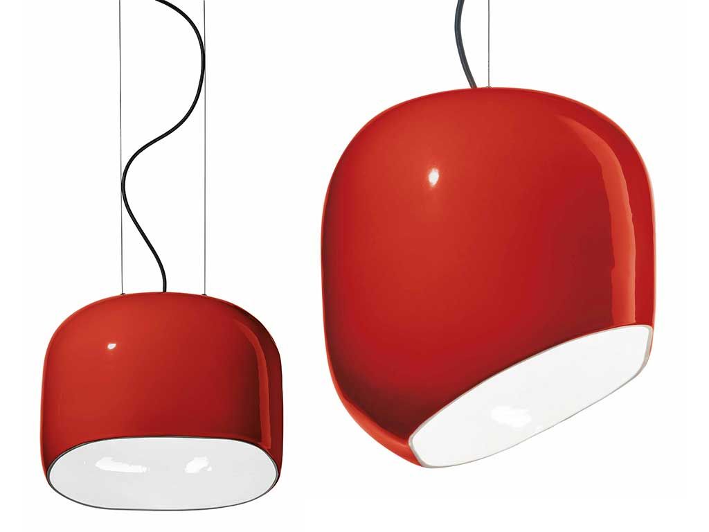 Sa forme est inspirée par les casques de l’automobilisme, l’abat-jour reflète et souligne la lumière sur la surface, avec un effet de grande profondeur. Le volume de l’abat-jour est découpé en diagonale pour optimiser la sortie de la lumière, que remplit les surfaces intérieures et sort avec un rendement optimal, en dirigeant légèrement le faisceau lumineux.