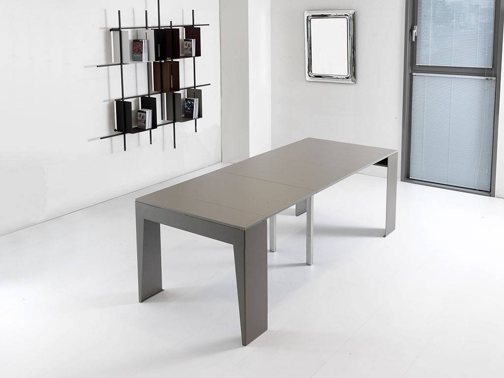 Console pliante, table-console pliante, console métal, idéal comme console design ou console moderne. Table-Console à rallonges avec structure en laminé d'acier peint. Surface en laminé écologique de 18 mm avec finition soft-touch. La table est munie complètement de 4 rallonges (cm 60 chaque) qui se trouvent à l'intérieur de la structure et qui se transforment.