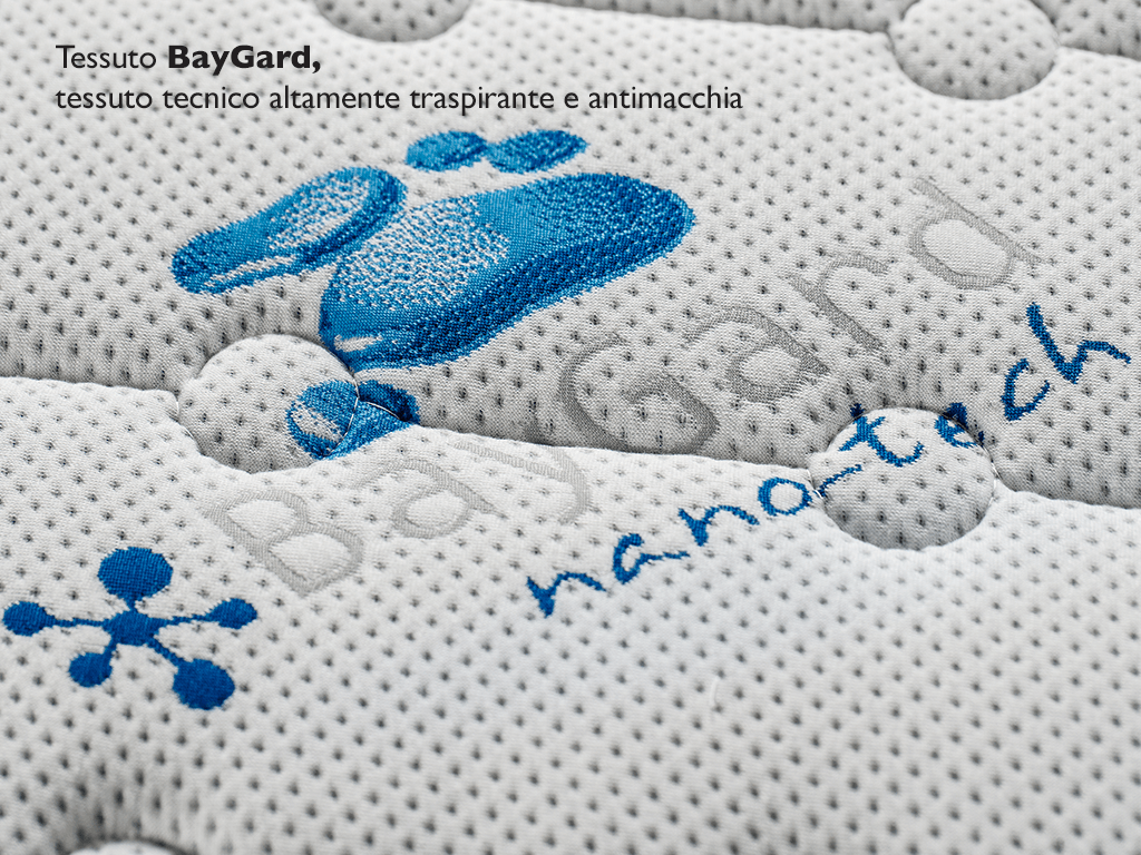 - Complètement déhoussable - Topper unis à travers fermeture éclat séparable - Tissu BayGuard: Très perméable à l’air et antitaches - Indéformable: il ne se déforme pas avec l’emploi - Lavable avec de l’eau: lavage avec de l’eau à 30° et du savon neutre - Ergonomique: Il est capable de soulager tensions et douleurs musculaires - Anallergique: Il ne cause pas d’allergies - Anatomique