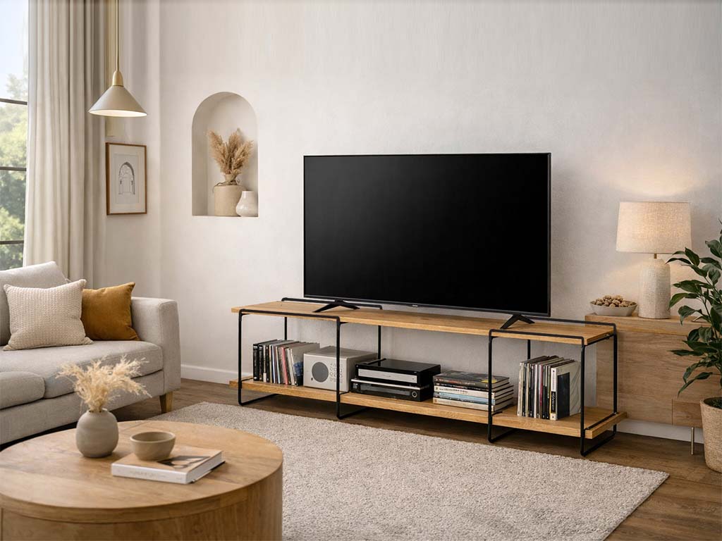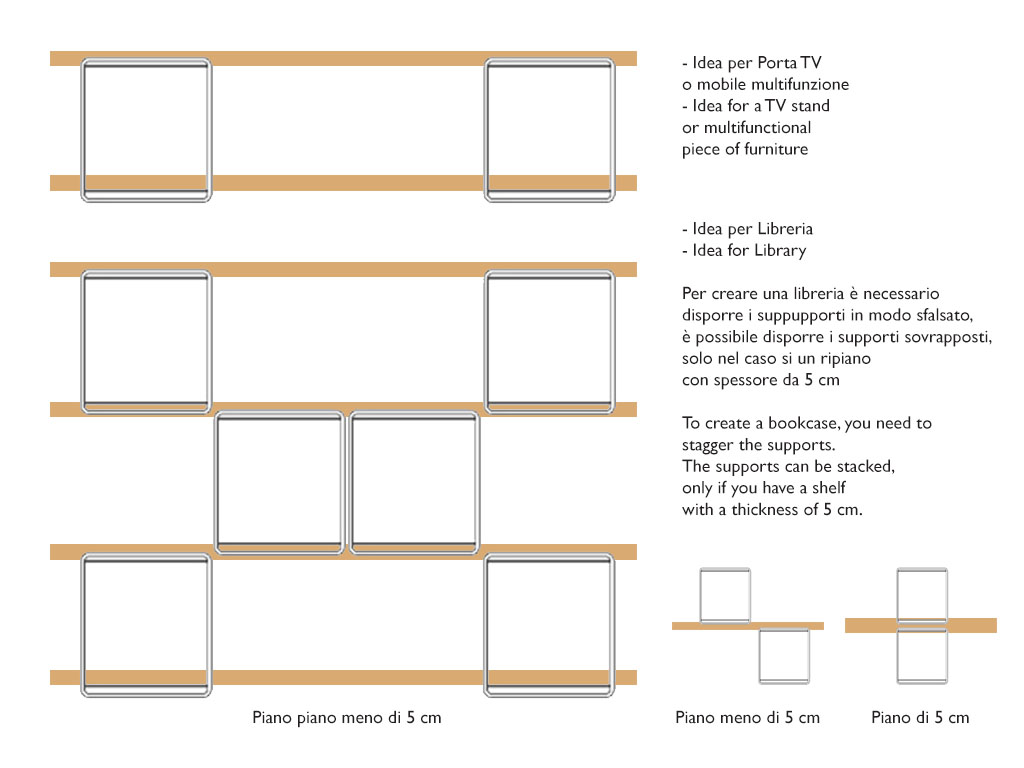 Grâce à ses dimensions compactes et à ses lignes épurées, cette structure se prête à de multiples usages : elle peut être utilisée comme meuble TV DIY, meuble multifonction, bibliothèque basse, étagère modulaire ou élément d’appui pour salons, entrées, bureaux, commerces et espaces professionnels. Utilisable seule ou combinée avec plusieurs modules, elle permet de créer des compositions modulaires personnalisées, idéales pour ceux qui apprécient les solutions flexibles et modulables.