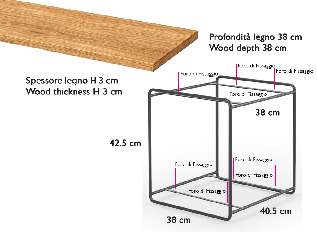 Dimensions: L 40 × P 38 × H 43 cm, adaptée à l’insertion de plateaux d’une profondeur de 38 cm et d’une épaisseur de 3 cm ou plus