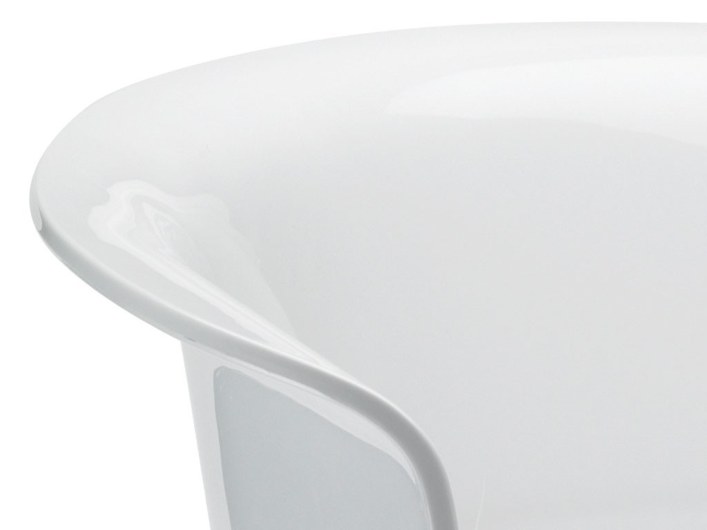 Chaise en polycarbonate. Coussin fixé à l'assise. Structure oscillante en acier chromé (à assembler).