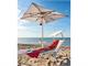 Parasol composé de huit bâtons en aluminium électro-soudé d’une épaisseur de 1,5 mm chacun, avec bouchons à libération rapide qui assurent la résistance de sel et autres agents atmosphériques.