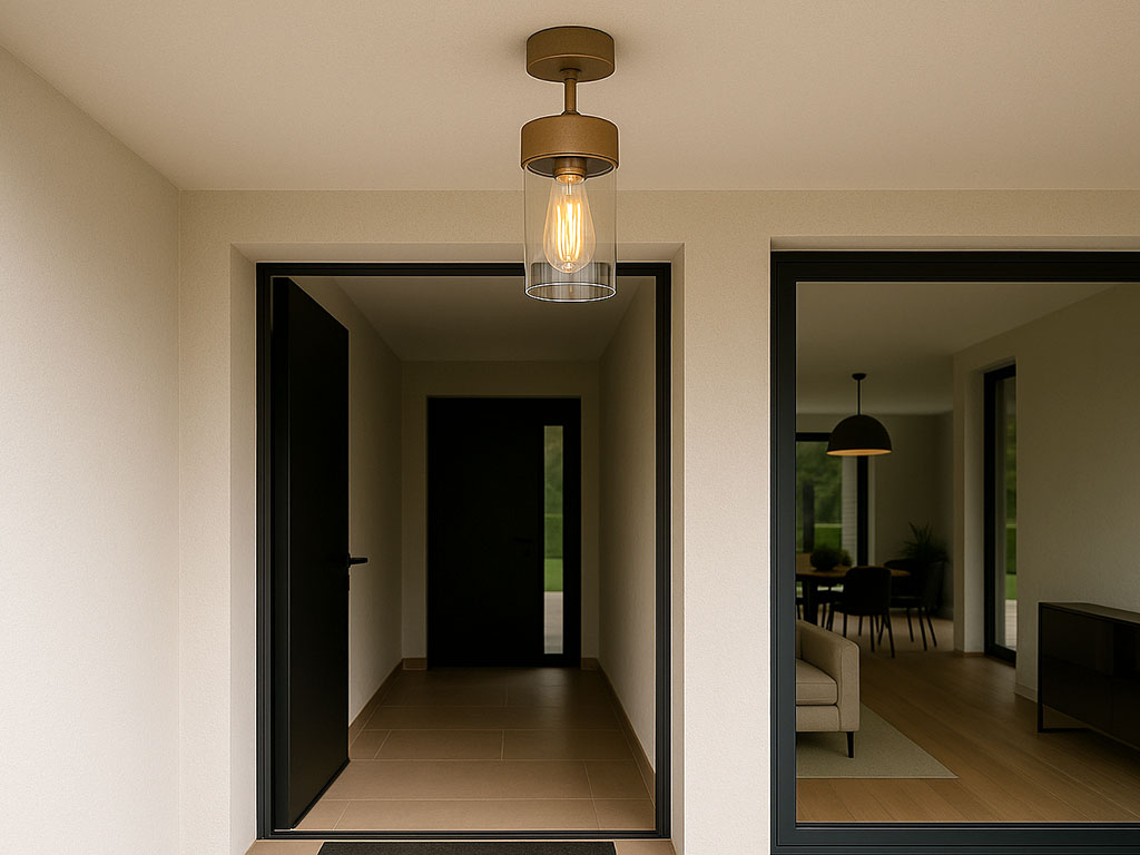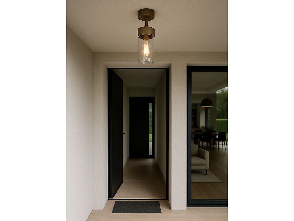 Plafonnier extérieur, plafonnier en laiton adapté pour intérieur et extérieur, en laiton moulé sous pression et plaque, avec une forme cylindrique. Idéal pour éclairer des lieux vintage comme les anciennes maisons de campagne et des villas, ou pour un ameublement en style industriel.