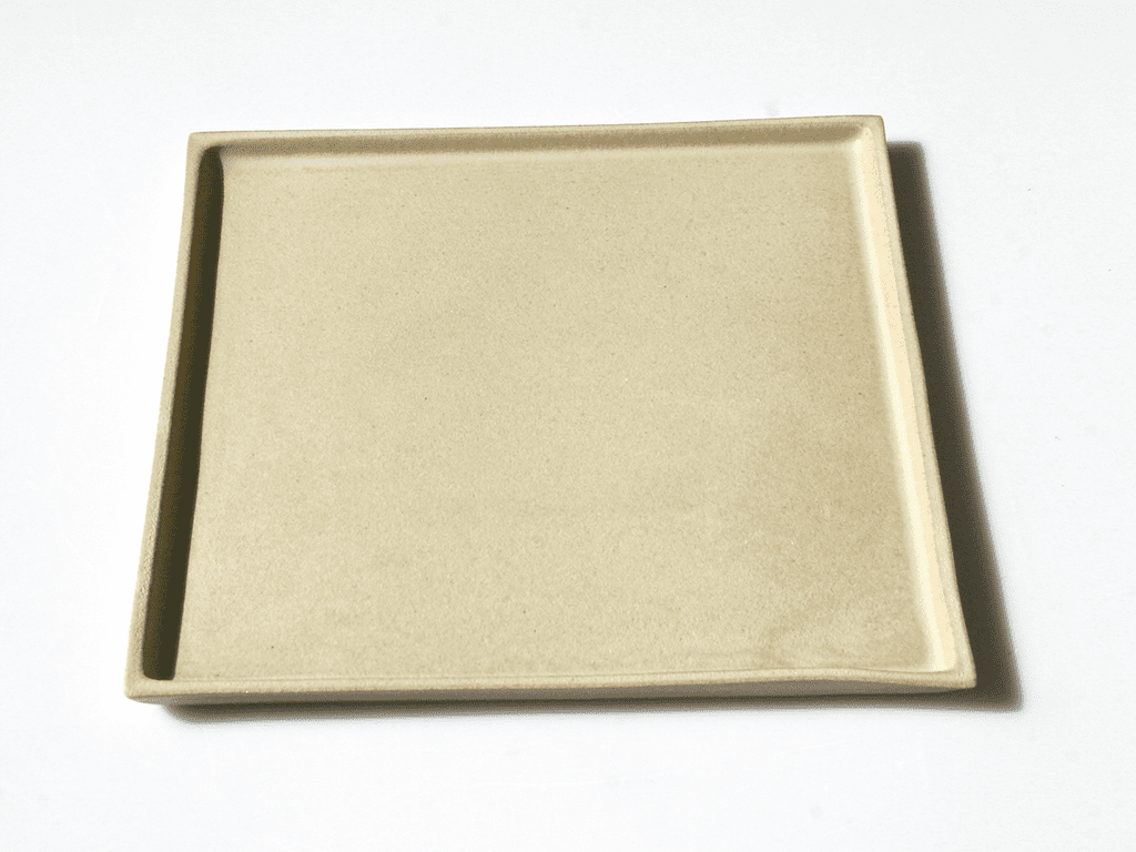 Service en céramique composé par plateaux carrés de design réalisés artisanalement en Italie, parfaits aussi comme assiettes pour la table.
