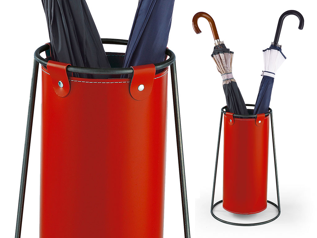 Porte parapluie en cuir avec structure en acier couleur noire vernie; revêtement en cuir.