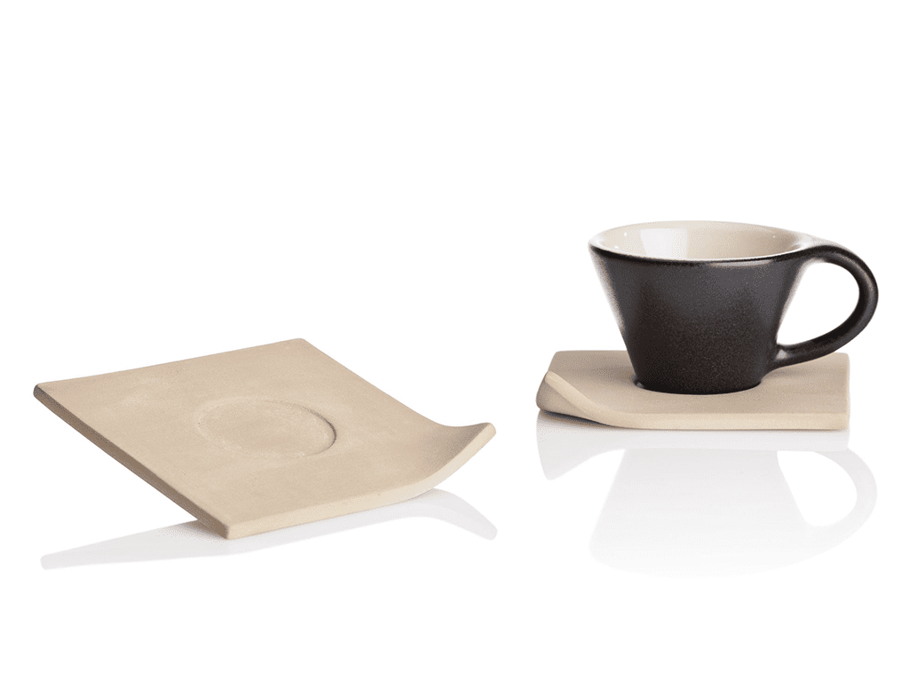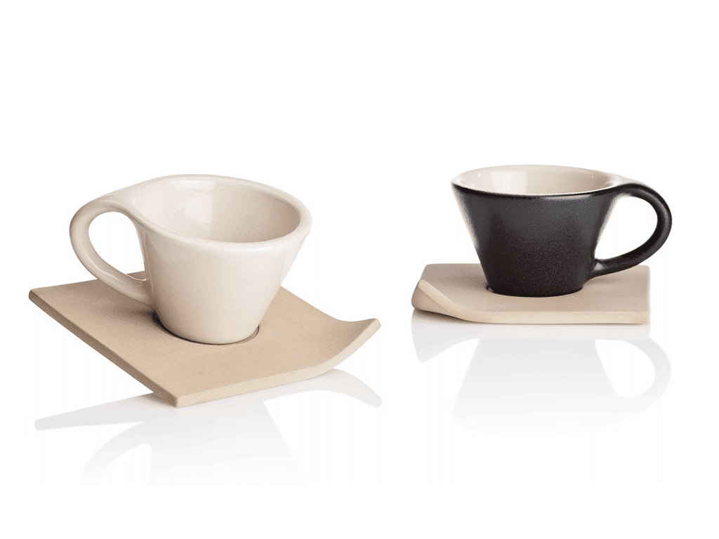 Service à café en céramique composé par tasse à café et sous-tasse carré en céramique grès réalisés artisanalement en Italie. Lien idéal entre qualité et charme esthétique, ils sont caractérisés par un design moderne qui conquerra vos invités.