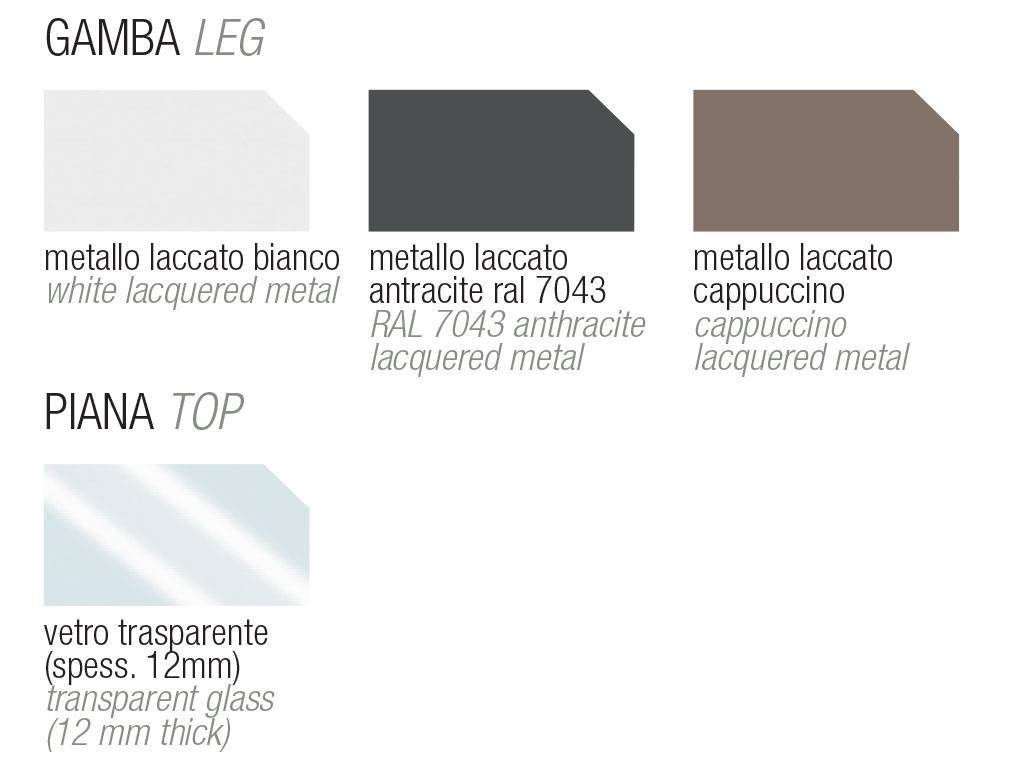 Table fixe avec cadre en métal avec verre transparent plat (12mm d'épaisseur).