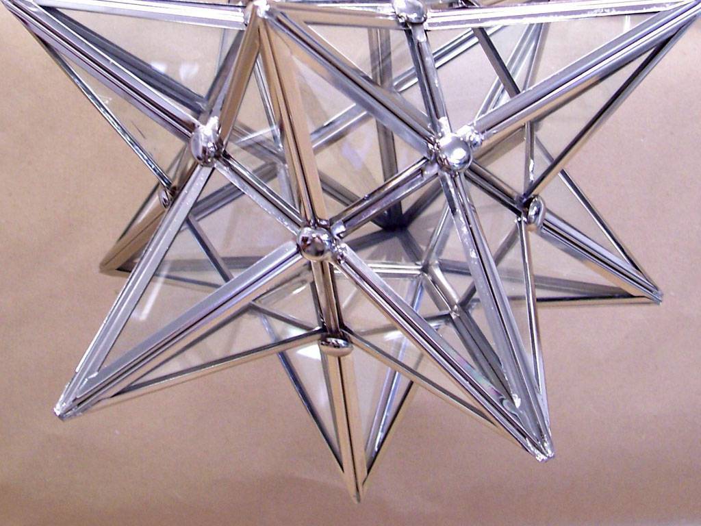 Stella est une lampe suspendue design au style unique, en forme d’étoile tridimensionnelle. Fabriquée avec des panneaux en verre transparent et une structure en laiton, cette suspension marie avec élégance charme classique et design contemporain. Inspirée de l’art de la Renaissance, elle est aussi connue sous le nom de “lampe étoile d’Urbino”.
