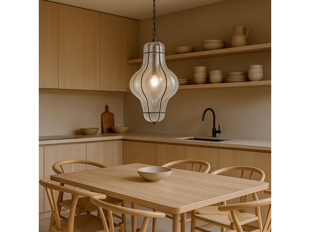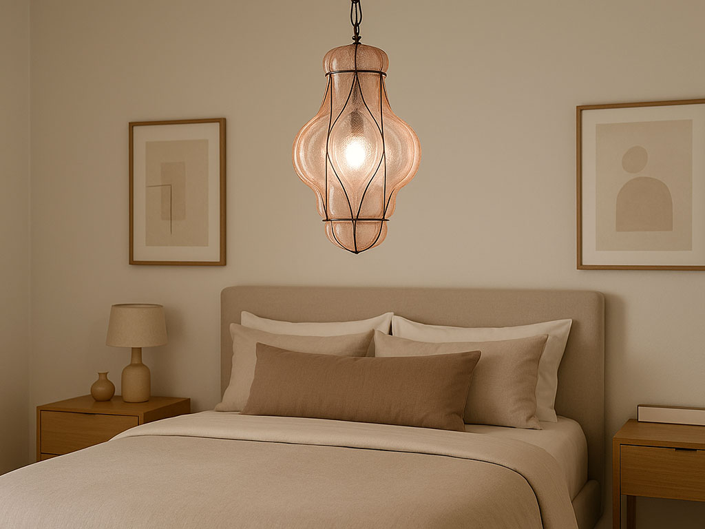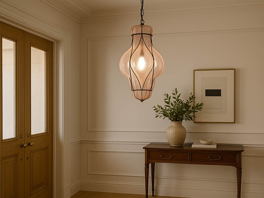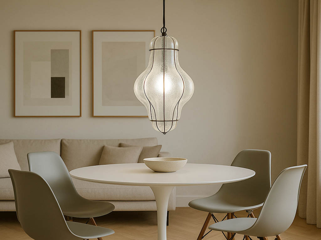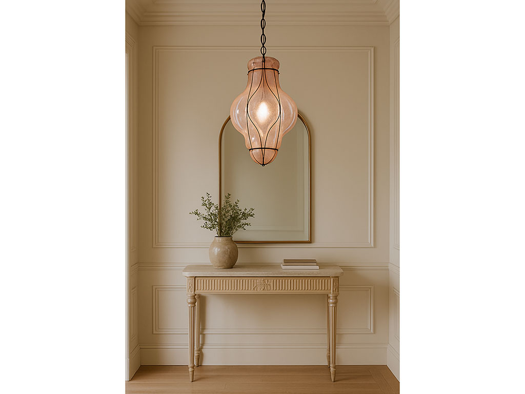 Suspension en verre, lustre en verre soufflé, lustre style venitien, idéal comme lustres en verre pour salon ou lustres en verre pour chambre à coucher.