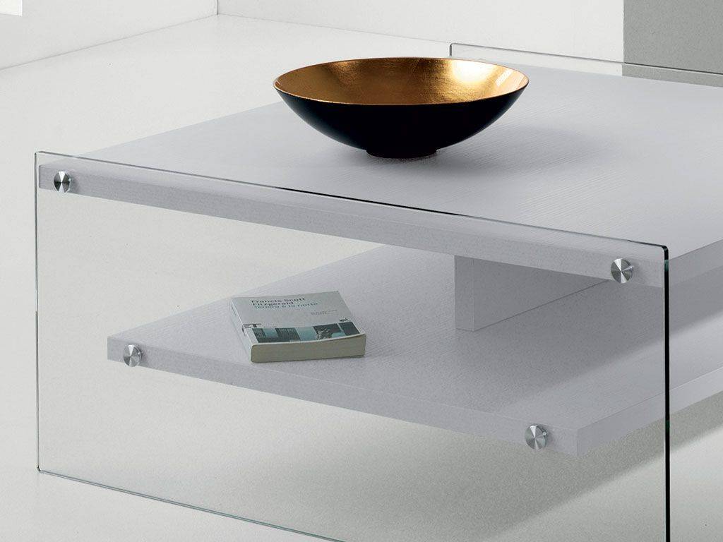Table basse salon, bout de canapé, table basse carré, table basse salon, idéal comme table basse moderne, table basse verre et bois. Tables basses avec étagères en laminé écologique soft-touch 18 mm. Côtés en verre tempré épaisseur 10 mm.