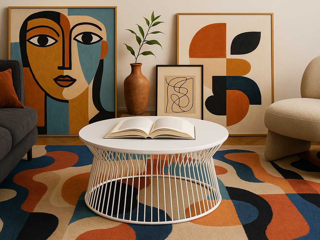Table basse d'extérieur au design moderne, table ronde avec structure en fil d'acier et plateau en acier, revêtement par poudre dans des couleurs pastel, idéale comme table de jardin ou de balcon, mais également comme table d'intérieur....