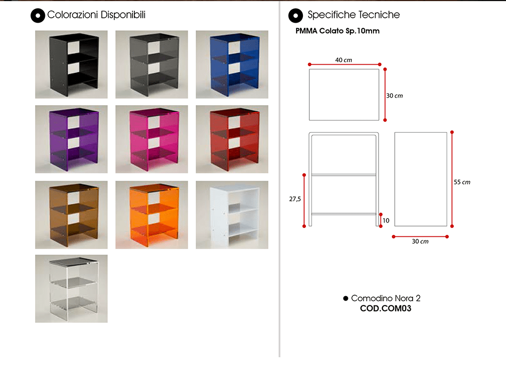 DIMENSIONS: L40 P30 H55 cm - Épaisseur 10 mm Hauteur 2 étagères 22,5 cm