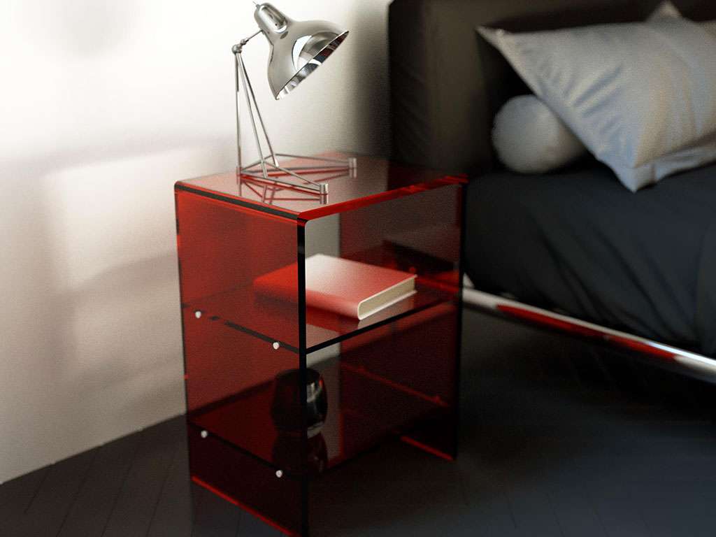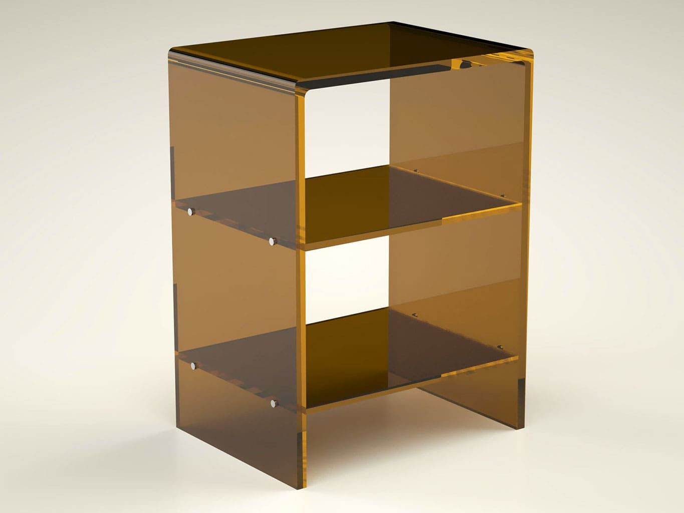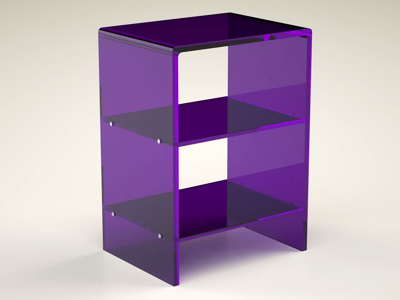 Table de nuit colorée en cristal acrylique avec deux étagères, idéale comme table de nuit pour la chambre ou comme table basse à côté du canapé.