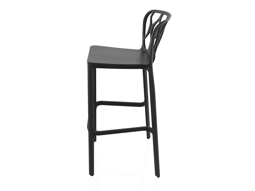Le dossier ajouré n’est pas seulement un élément esthétique, mais il est également conçu pour garantir confort et ergonomie, en offrant un bon soutien du dos même lors d’une utilisation prolongée. L’assise large et bien proportionnée rend ce tabouret idéal aussi bien pour un usage professionnel que domestique.