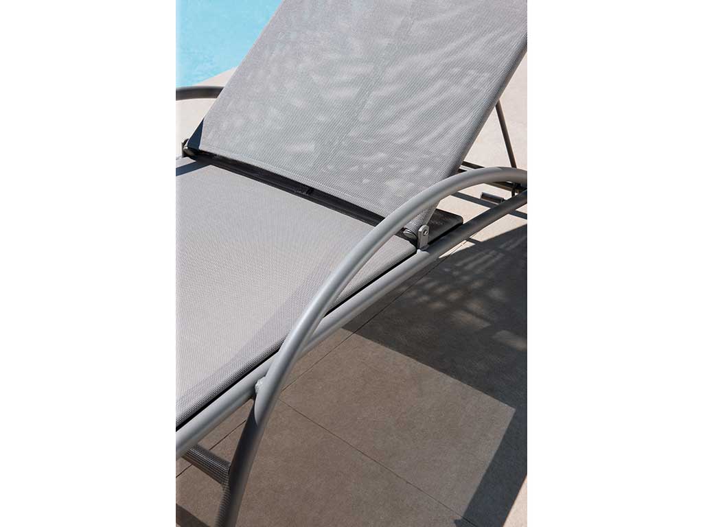Transats empilables avec roues, structure en métal zingué peint, ils sont des lits parfaits au bord de la piscine ou partout où vous voulez créer la suggestion d'un coin intime, où se détendre agréablement.