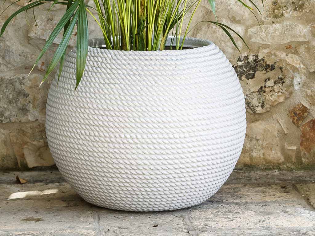 Bali Sphère Effet Corde – Vase rond design pour intérieur et extérieur