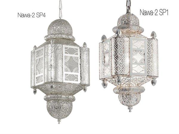 Nawa, famiglia di lampade a sospensione, con montatura e diffusore in metallo traforato.Adatte a spazi interni.