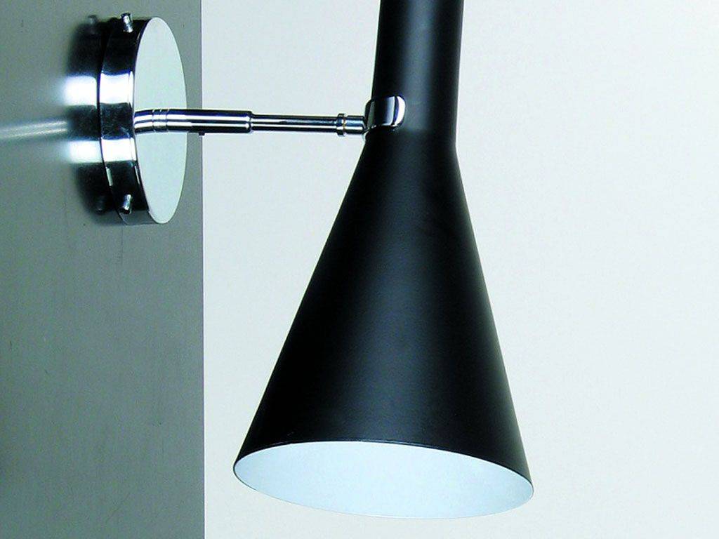 Lampada da parete, con braccio in acciaio cromato. Snodo in ottone.