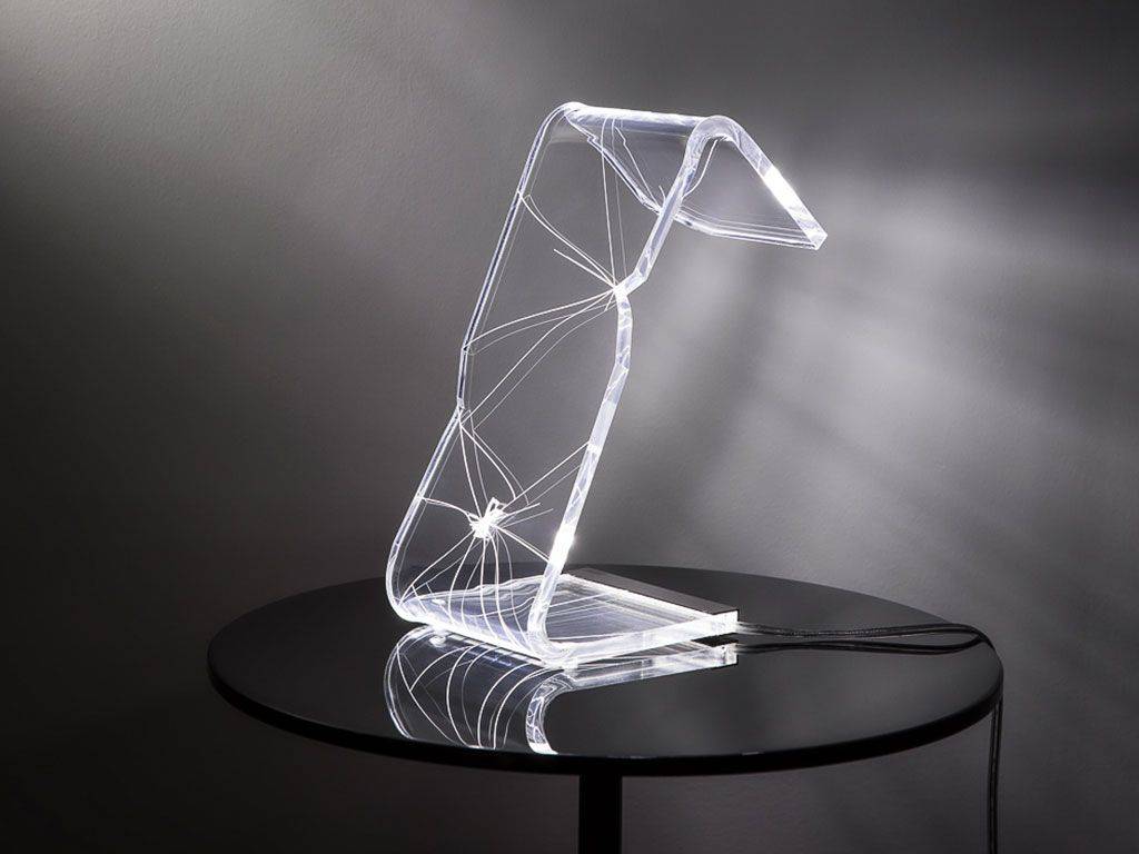 Lampada da tavolo, lampada plexiglass design, lampada design moderno ideale come lampade da tavolo moderne design o lampade da comodino design moderno. Lampada da tavolo Limited Edition in Cristallo Acrilico Trasparente decorato, con impianto C-Led, e profilo Cromo. Lampada dotata di attacco jack al filo della presa per garantire una maggior durata della luce led. Ottima come idea regalo, ideale come lampada da tavolino o comodino.