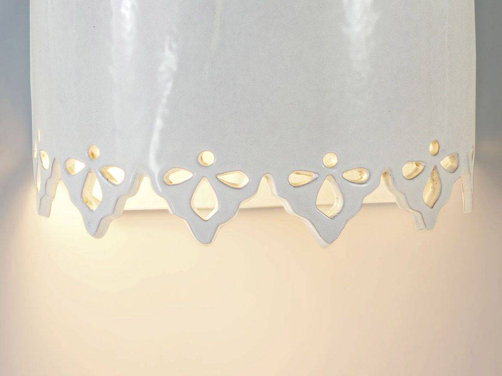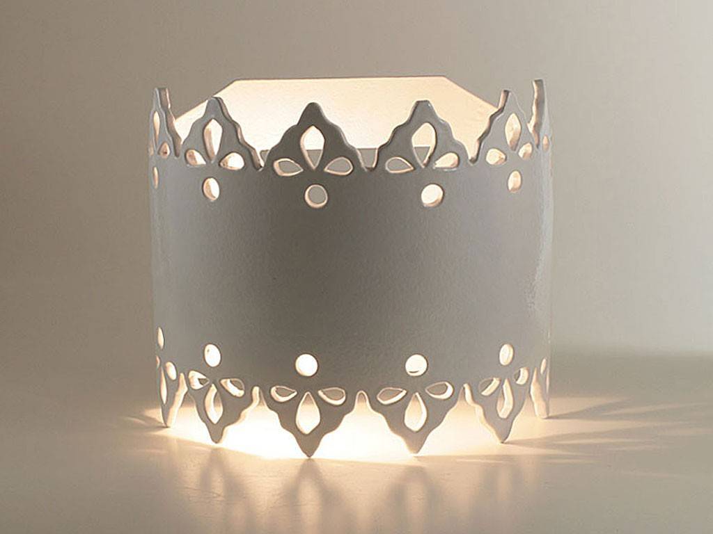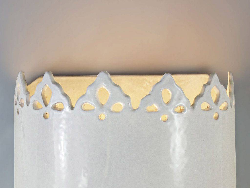 Applique merlata tirata su al tornio ed intagliata a mano fornita con portalampada attacco edison e27