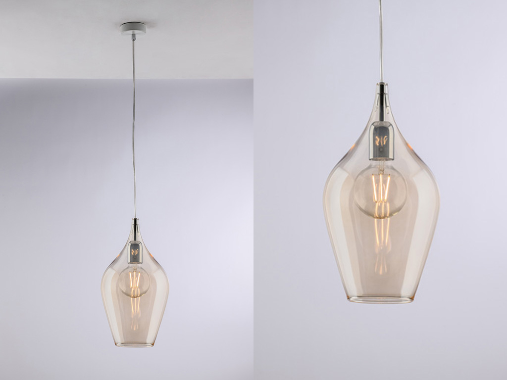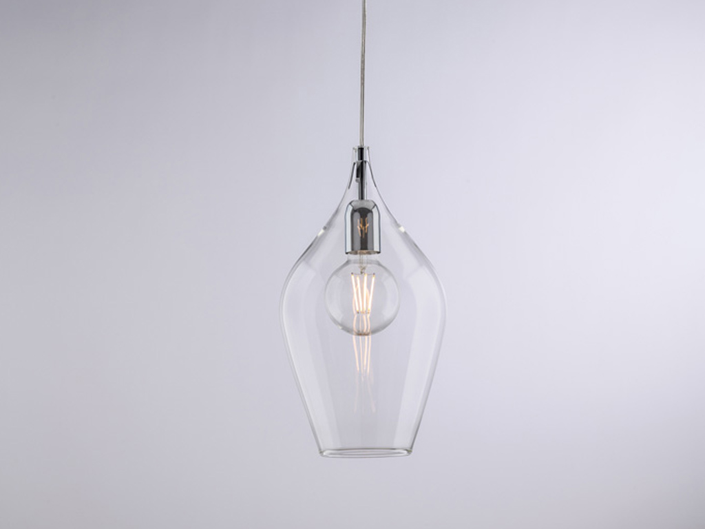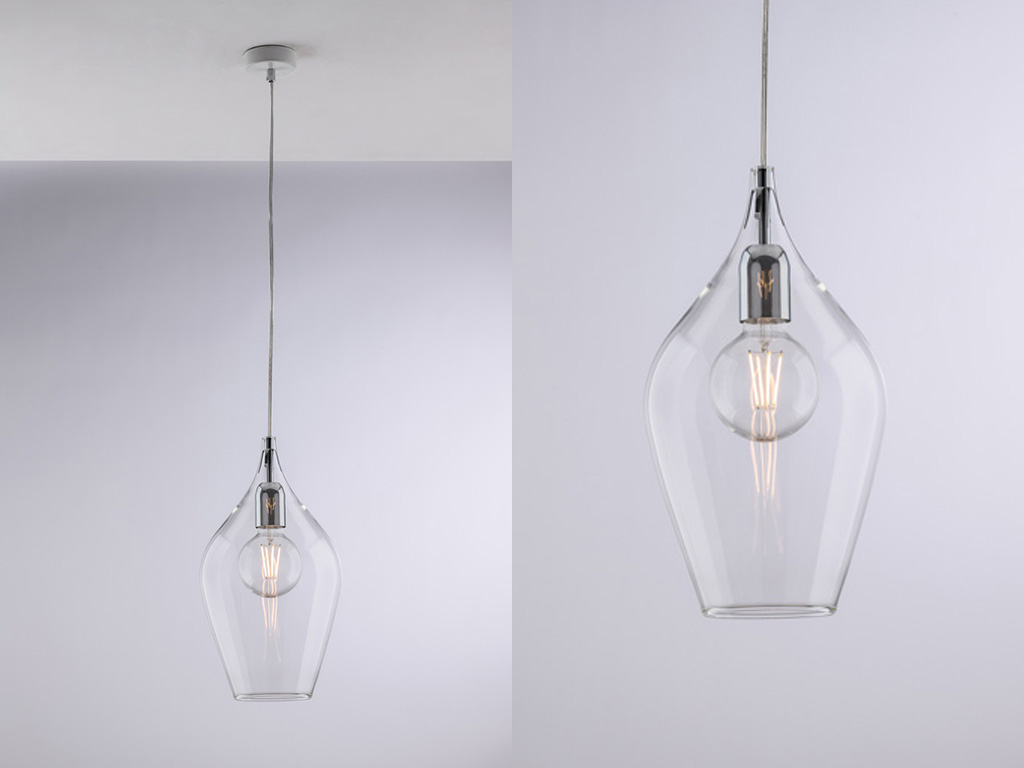 Il diffusore in vetro, caratterizzato da una forma sinuosa e raffinata, valorizza la luce e diffonde un’illuminazione morbida e uniforme, capace di esaltare ogni ambiente. L’attacco cromato e il cavo regolabile donano alla lampada un aspetto moderno e pulito, rendendola estremamente versatile e adatta a diversi stili di arredamento — dal contemporaneo all’industrial, fino al classico rivisitato con gusto moderno.
