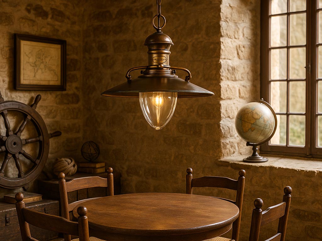 Lampada stile marina, lampada in ottone vintage e vetro, ideale come lampada nautica vintage o lampada stile vecchia marina. Linea di lampade da interno con struttura in ottone, finitura brunito satinato, brunito sfumato lucido, brunito verde, cromo o rame antico. Vetro trasparente. Lampade di alta qualità con finiture che durano nel tempo, particolarmente indicate per ville, case al mare o eleganti dimore. Ogni articolo viene realizzato con cura e passione, viene valorizzato da piccoli tratti distintivi, caratteristiche tipiche ormai esclusive della maestria artigiana. Dimensioni: Ø 45 x H 44 + 63 = TOT 107 cm max 75W E27 IP20 220-240V (lampadina non fornita) Colori e Finiture: BRVE - Brunito verde BRSF - Brunito sfumato lucido RA - Rame antico CR - Cromo Vetro trasparente L'antichizzazione di questi prodotti è fatta manualmente pertanto la tonalità dell'ottone potrebbe avere sfumature diverse da quelle rappresentate in fotografia. Questi prodotti sono realizzati artigianalmente con materiali tradizionali e di qualità come l'ottone, sapientemente creati a mano per ottenere piccoli e grandi giochi di luce dal disegno unico e di alta qualità con finiture che durano nel tempo. Vetri, soffiati da maestri artigiani secondo antiche tecniche di lavorazione. Eventuali piccole imperfezioni sono da considerare quali pregi e tratti distintivi della ricercata lavorazione e non difetti di fabbricazione. Prodotto artigianale realizzato in Italia