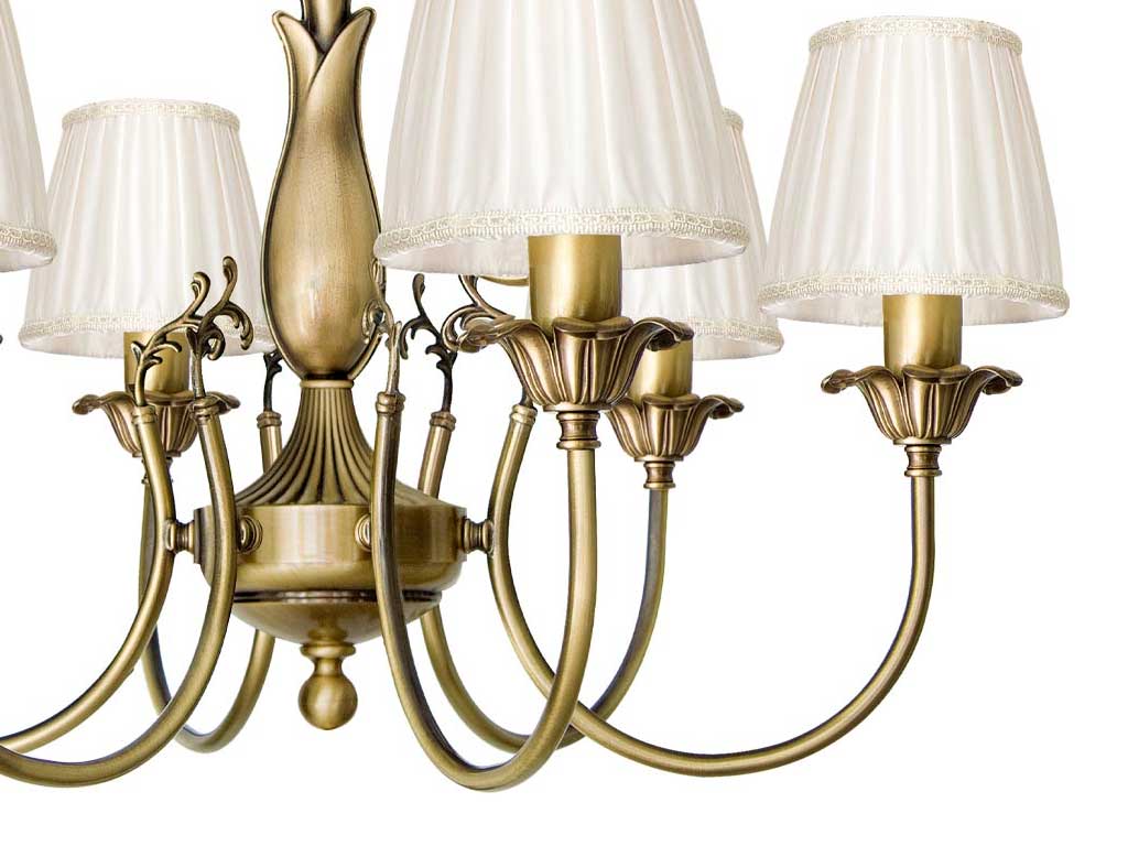 struttura in ottone con paralumi in tessuto bianco tradizionale, ideale come