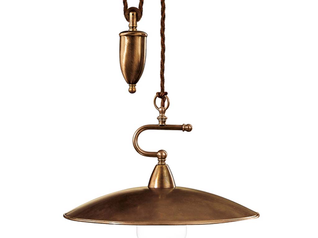 Lampadario saliscendi vintage, lampada a sospensione con carrucola, lampadario con struttura in ottone. ideale come lampadario cucina vintage o lampadario vintage salotto. Linea di lampade da interno con struttura in ottone, finitura brunito. Lampade di alta qualità con finiture che durano nel tempo, particolarmente indicate per ville, case al mare o eleganti dimore. Ogni articolo viene realizzato con cura e passione, viene valorizzato da piccoli tratti distintivi, caratteristiche tipiche ormai esclusive della maestria artigiana. Dimensioni: Ø 40 x H max 135 cm max 100W E27 IP20 220-240V (lampadina non fornita) Colori e Finiture: BR - Brunito L'antichizzazione di questi prodotti è fatta manualmente pertanto la tonalità dell'ottone potrebbe avere sfumature diverse da quelle rappresentate in fotografia. Questi prodotti sono realizzati artigianalmente con materiali tradizionali e di qualità come l'ottone, sapientemente creati a mano per ottenere piccoli e grandi giochi di luce dal disegno unico e di alta qualità con finiture che durano nel tempo. Vetri, soffiati da maestri artigiani secondo antiche tecniche di lavorazione. Eventuali piccole imperfezioni sono da considerare quali pregi e tratti distintivi della ricercata lavorazione e non difetti di fabbricazione. Prodotto artigianale realizzato in Italia