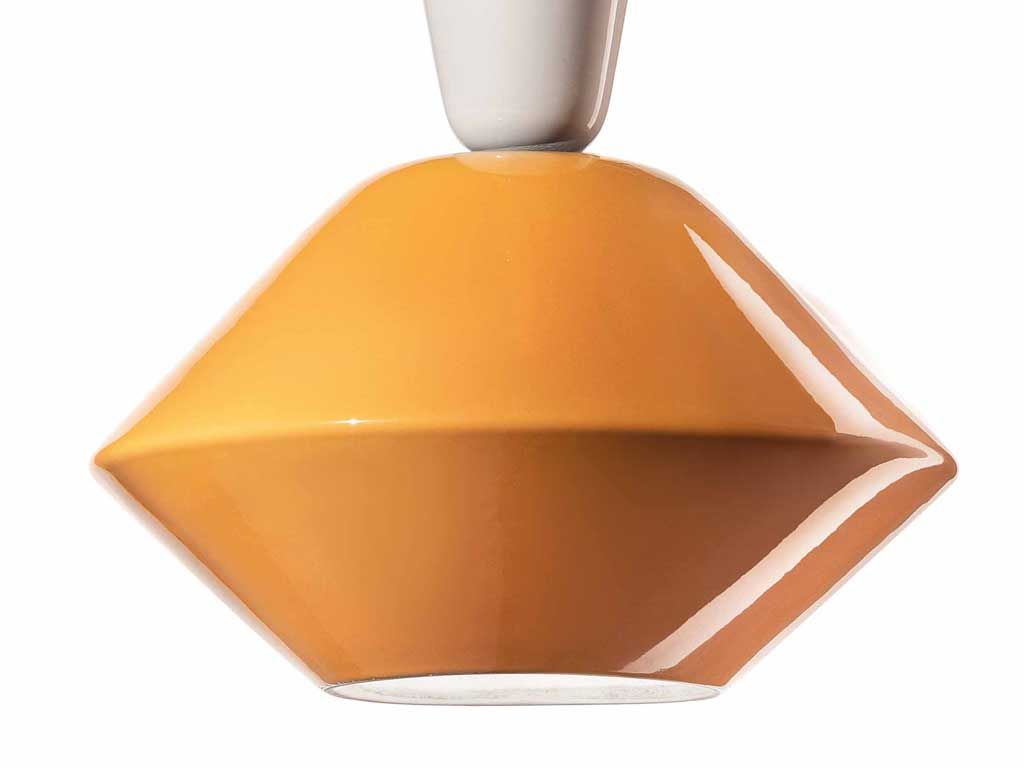 Lampadario sospensione di design in ceramica, disponibile in 3 misure con paralume in 2 colori.