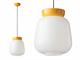 DIMENSIONI: Ø 29 cm H 34 cm - attacco a soffitto Ø 12 cm Lunghezza cavo max 120 cm (cavo cotone rivestito). 1 x MAX 53W E27 - IP 20 - 220-240 V Classe energetica A++ > D peso netto Kg 2.70 Lampadina esclusa COLORI: GLT = Bianco Latte e Giallo VLT = Bianco Latte e Verde