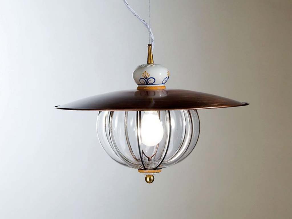Lampada realizzata in vetro soffiato all’interno di una gabbia in acciaio inossidabile, lavorata da maestri artigiani veneziani , modelli senza tempo in una combinazione perfetta tra eleganza e raffinatezza.