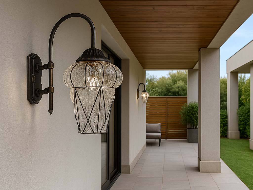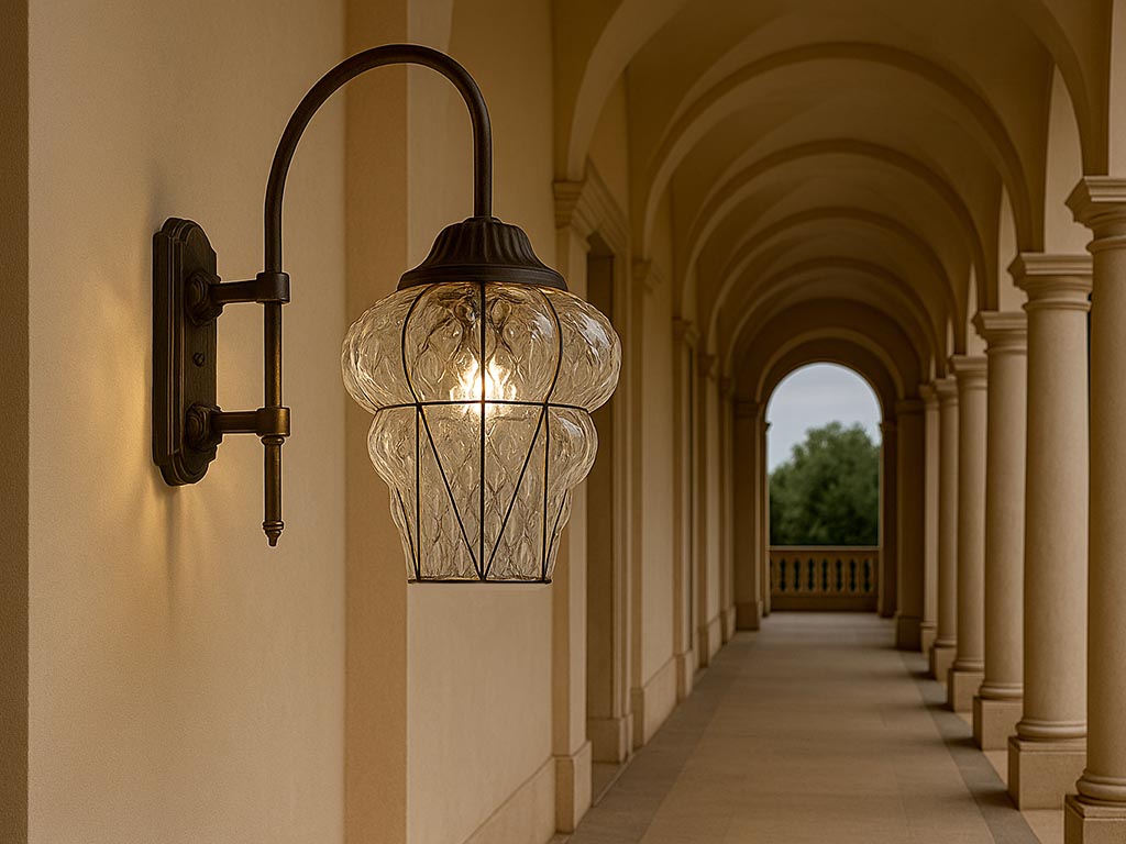 Applique da esterno, applique in vetro soffiato in stile veneziano, ideali come applique da esterno classiche o applique eleganti da parete.