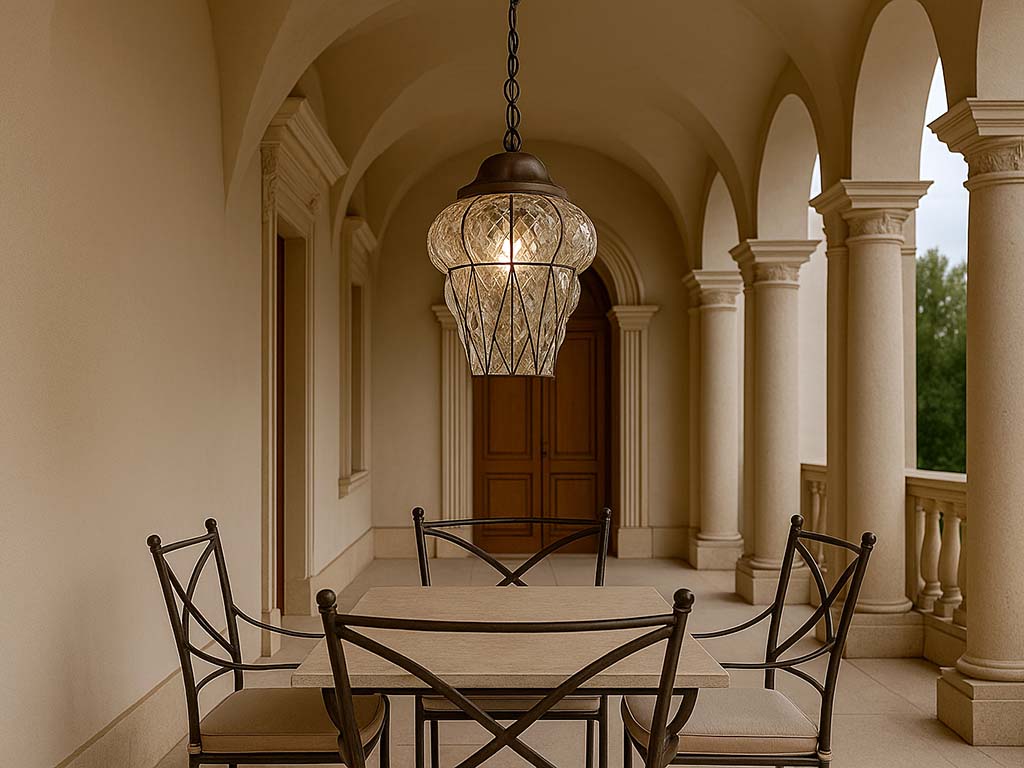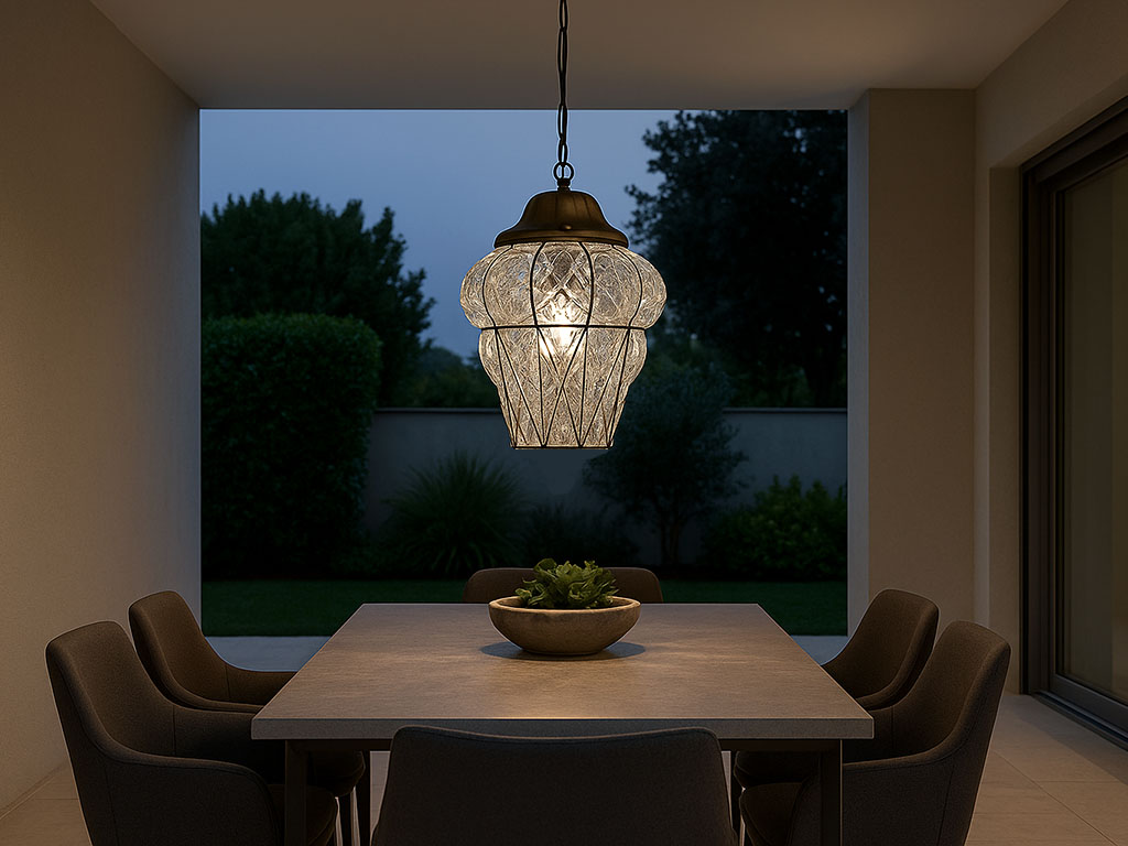 Ogni passaggio rende ogni lanterna veneziana in vetro soffiato un pezzo unico. Il risultato finale è una lampada che decora con luce calda e stile romantico, trasformando porticati e spazi esterni in ambienti di grande charme.