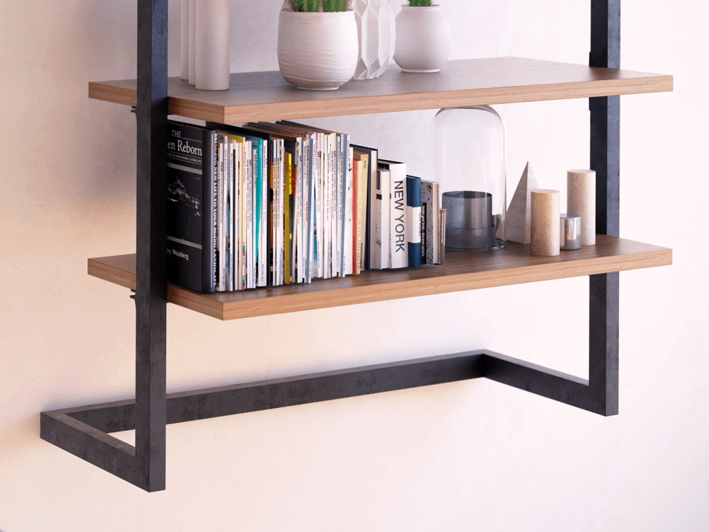 Libreria a muro, libreria a parete design, libreria metallo e legno, ideale come libreria soggiorno design o libreria cameretta.
